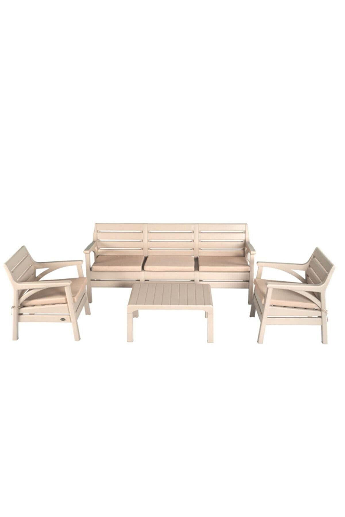 Takım, 1 adet geniş üçlü koltuk, 2 adet tekli koltuk, 5 adet konforlu minder ve 1 adet orta sehpadan oluşmaktadır. Ergonomik tasarımı, oturma ve sırt kısmında rahat bir kullanım sunarken; minderleri sayesinde ekstra konfor sağlar. Sehpa ise çay, kahve ya da ikramlıklarınız için ideal boyutlara sahiptir.