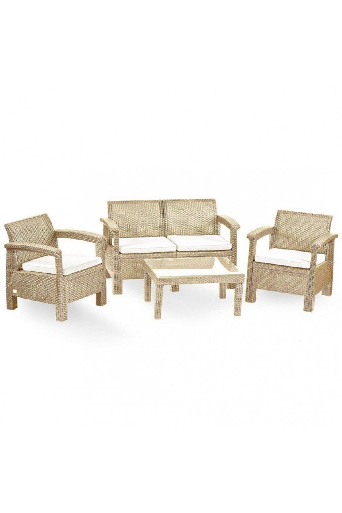 Ürün, 1 adet çiftli koltuk, 2 adet tekli koltuk ve cam yüzeyli sehpadan oluşmaktadır. Oturma ve sırt minderleri ile konforlu bir kullanım sunar. Minderler çıkarılabilir yapısıyla pratik temizlik imkânı sağlar.