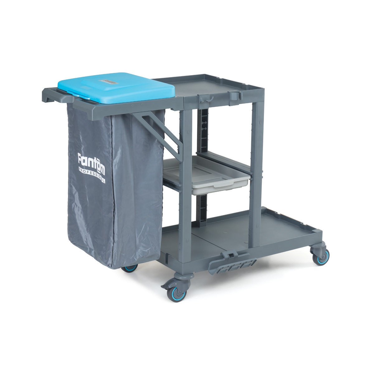 Procart 310, hastaneler, oteller, AVM’ler ve büyük işletmeler için hijyenik ve hızlı temizlik sağlar. Renk kodlu çöp kapağı, atıkları sınıflandırmayı kolaylaştırır, frenli tekerlekleri ise güvenli kullanım sunar.