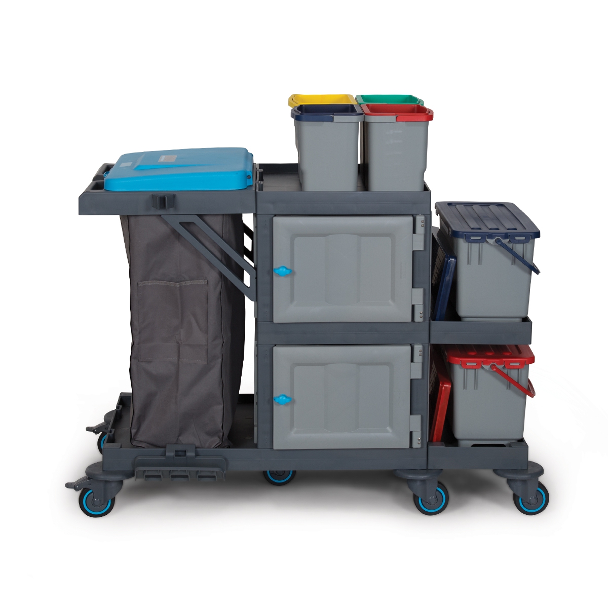Procart 338, hastaneler, oteller, AVM’ler ve büyük işletmeler için tasarlanmış, kapalı dolap sistemi ve geniş hacmi ile hijyenik ve düzenli temizlik sunar. Güçlendirilmiş yapısı ve yüksek taşıma kapasitesi sayesinde profesyonel kullanıma uygundur.