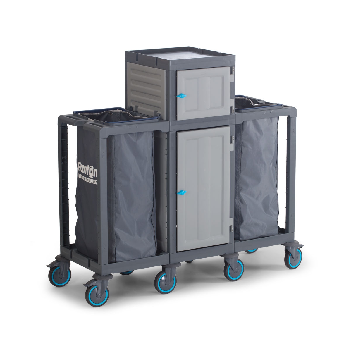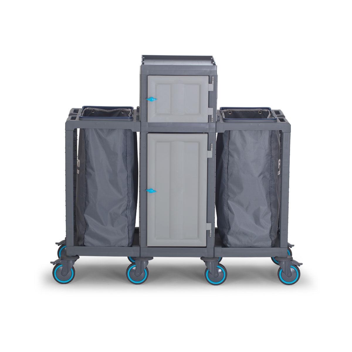 Procart 414 Kat Arabası, 400 kg taşıma kapasitesi ile otel, hastane, yurt, tatil köyü gibi işletmelerde etkin ve pratik bir çözüm sunar. Plastik gövdesi, iç ve dış mekanlarda kullanılabilir, su ve kimyasal temizliklerden etkilenmez ve paslanmaz. 2 x 120 lt çöp bölmesi kapasitesine sahip olan bu model, yüksek kalite CPP gövde malzemesi ve 6 mm kalınlıkla üretilmiştir. 5 raf bölmesi ve 4 adet frenli, 4 adet frensiz tekerleği ile kullanımda esneklik ve güvenlik sağlar. Modülün 4 tarafı kapalı yapısı estetik bir görünüm sunarken, 2 sabit ve 3 hareketli kilitli kapağı sayesinde güvenli taşıma imkanı sunar. Ergonomik itme sapı ve modüler tasarımı ile işleri kolaylaştırır. Çöp torbası kilitli sistem sayesinde kullanımda pratiklik sağlar. Ürün, kurulu olarak adresinize teslim edilir.