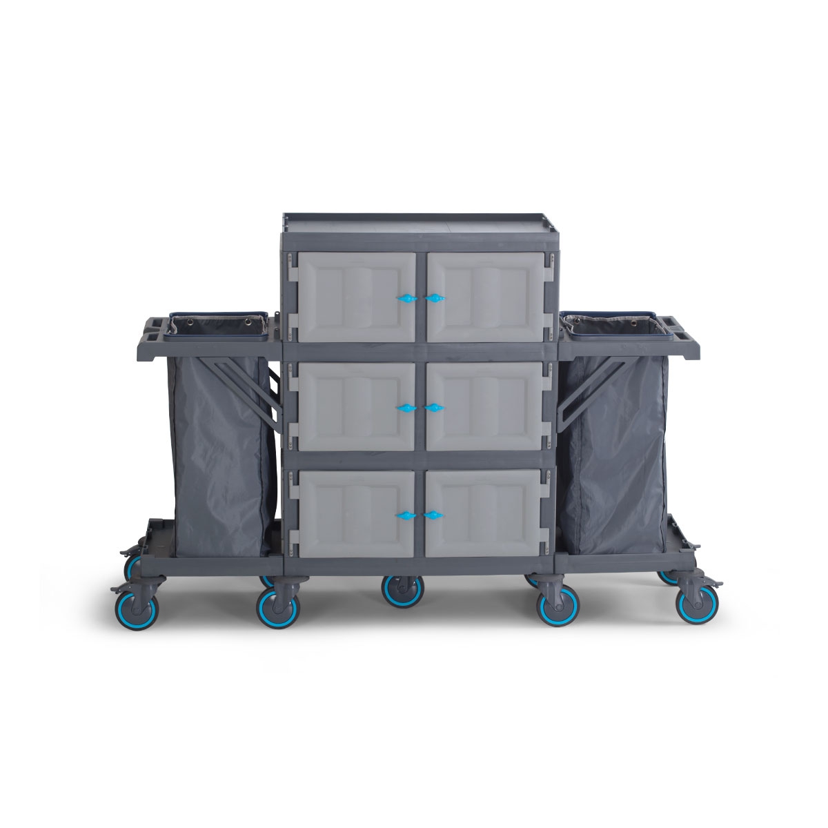 Procart 453, kapaklı dolap yapısı, geniş raf düzeni ve sağlam tekerlekleri ile oteller, hastaneler ve yurtlar için ideal bir temizlik ve taşıma çözümüdür. Kilitli dolap sistemi, değerli malzemelerin güvenli bir şekilde saklanmasını sağlar.