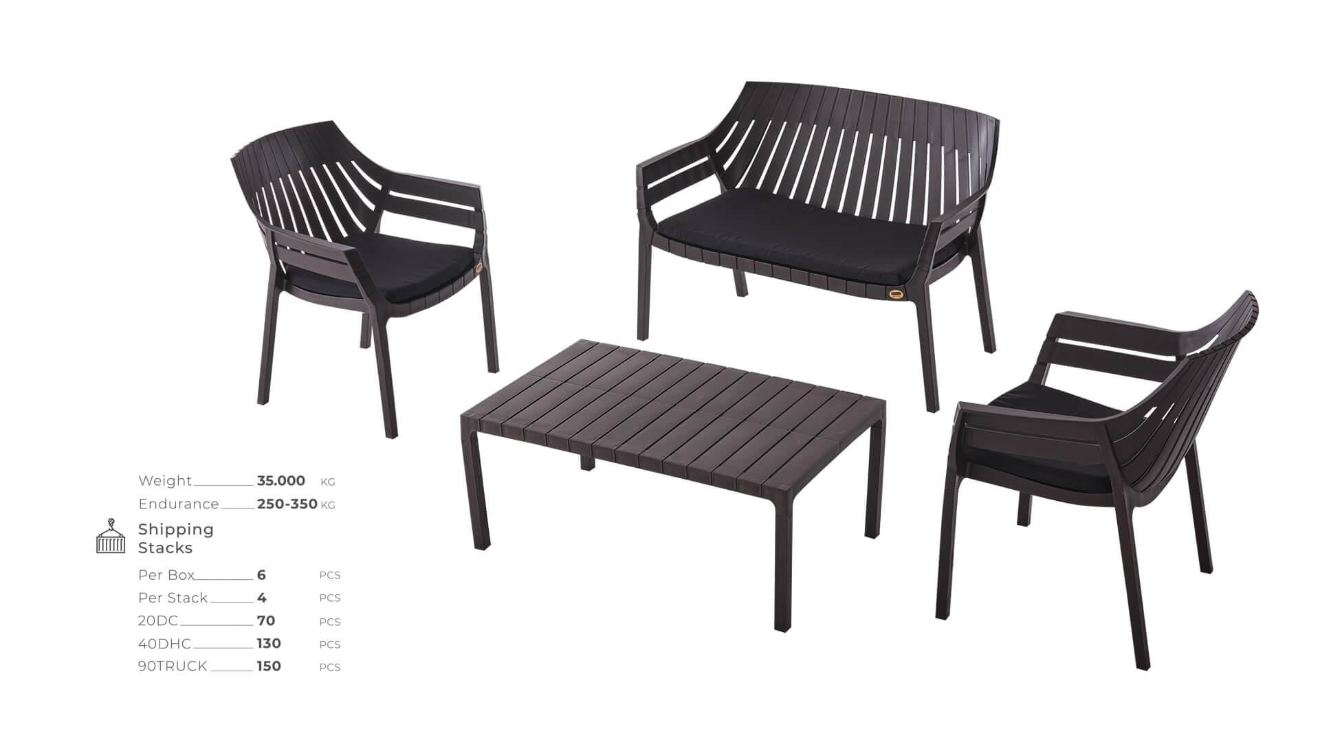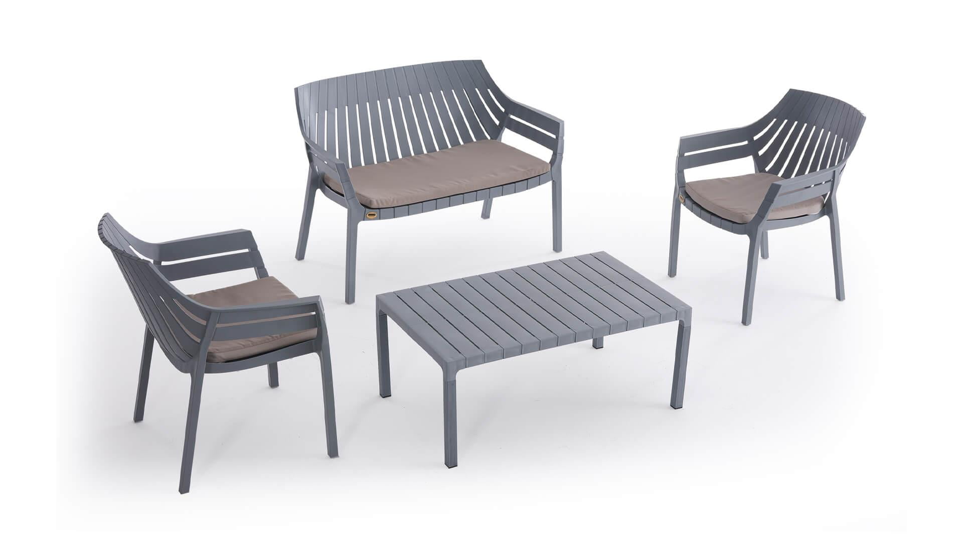 UFCompany Hilton 4 Kişilik Bahçe ve Balkon Oturma Grubu, balkon, bahçe, teras veya veranda gibi alanlarda keyifli zaman geçirmeniz için tasarlanmıştır. Oturma grubu, ergonomik tasarımı ve hava alan yapısıyla uzun süreli oturmalarda konfor sağlar. Dayanıklı polipropilen malzeme kullanımı sayesinde hem insan sağlığına zararsızdır hem de çevre dostudur. Ürün, geri dönüştürülebilir kaliteli plastikten üretilmiş olup uzun yıllar boyunca kullanıma uygundur.